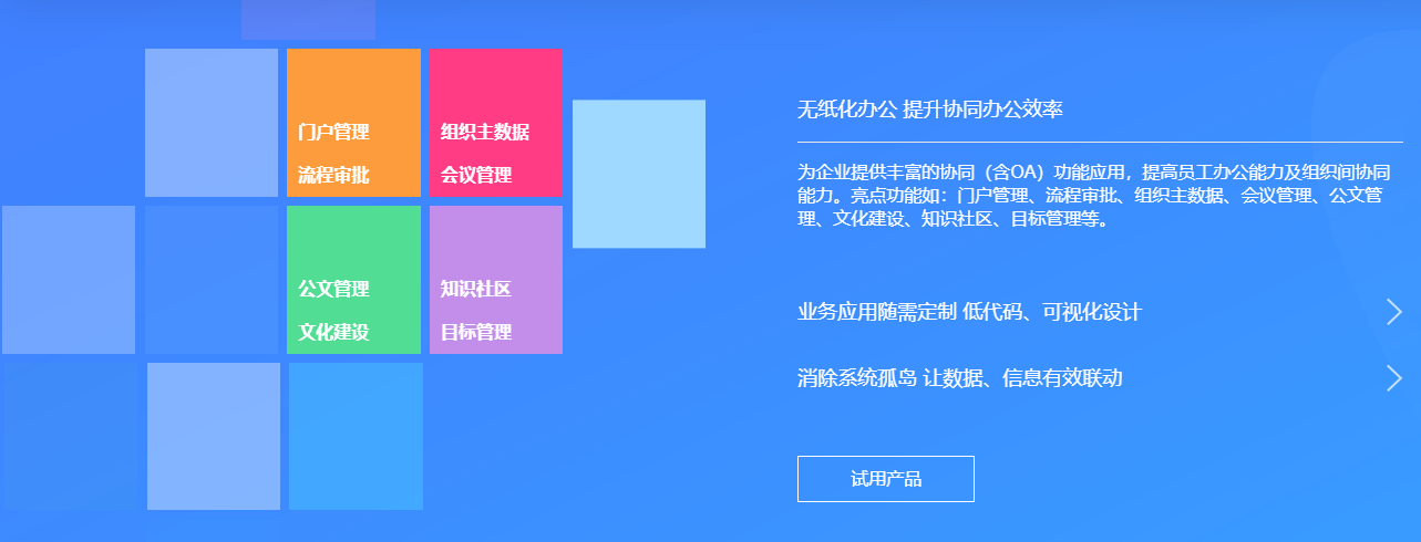 疫情期间,产业互联引发的客户服务和价值交付模式的变化,带动OA产品形态的升级换代,云化、生态化的OA释放出更强大的生命力,更多地被赋予协作的意义。通过OA办公系统,企业可实现多人、多部门、跨地域的协同办公模式,员工也可获得灵活高效的工作体验。
