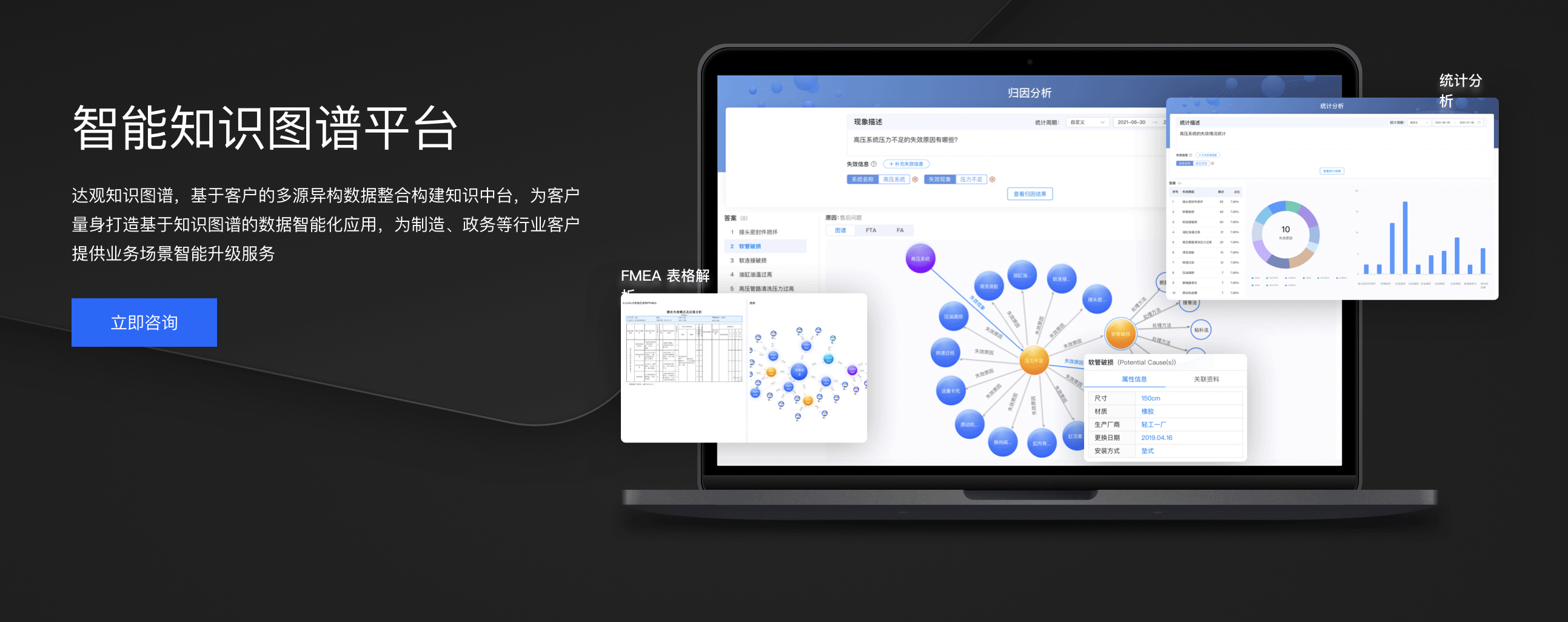 达观知识图谱,基于客户的多源异构数据整合构建知识中台,为客户量身打造基于知识图谱的数据智能化应用,为制造、政务等行业客户提供业务场景智能升级服务。针对传感器、OA系统、经营性数据、专家规则、统计报表等各类结构化数据,实现自动映射式构建;针对研报、财报、百科、新闻、 公告等非结构化文件,实现基于自然语言处理技术和OCR技术的智能抽取、语义分析与模型构建,实现的抽取式构建。