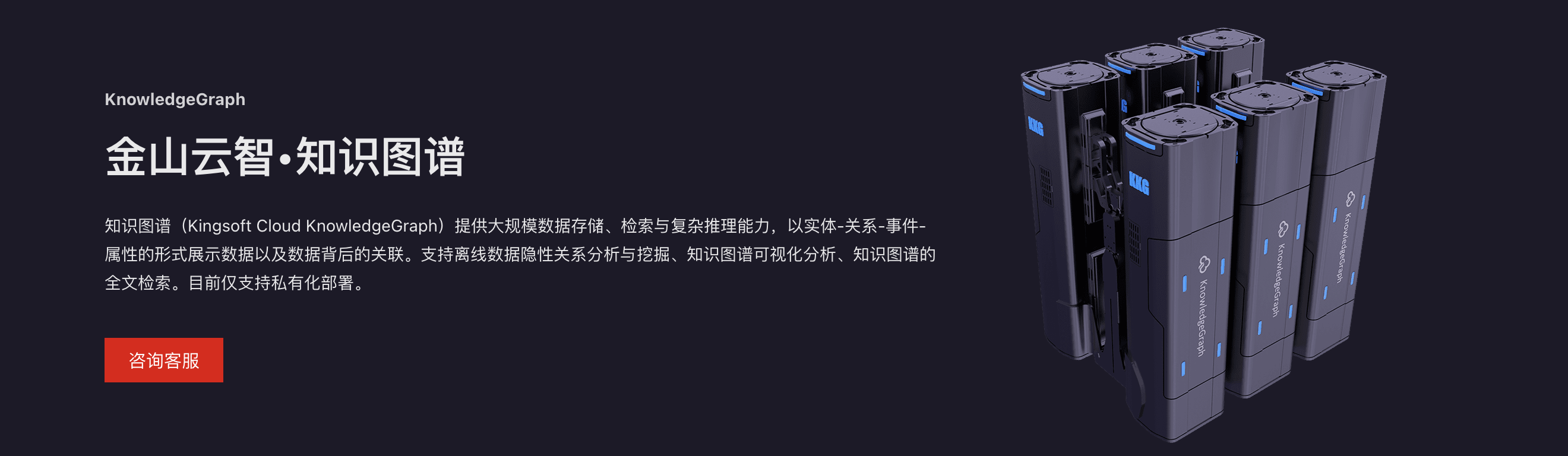金山云智•知识图谱提供大规模数据存储、检索与复杂推理能力,以实体-关系-事件-属性的形式展示数据以及数据背后的关联。支持离线数据隐性关系分析与挖掘、知识图谱可视化分析、知识图谱的全文检索。目前仅支持私有化部署。
