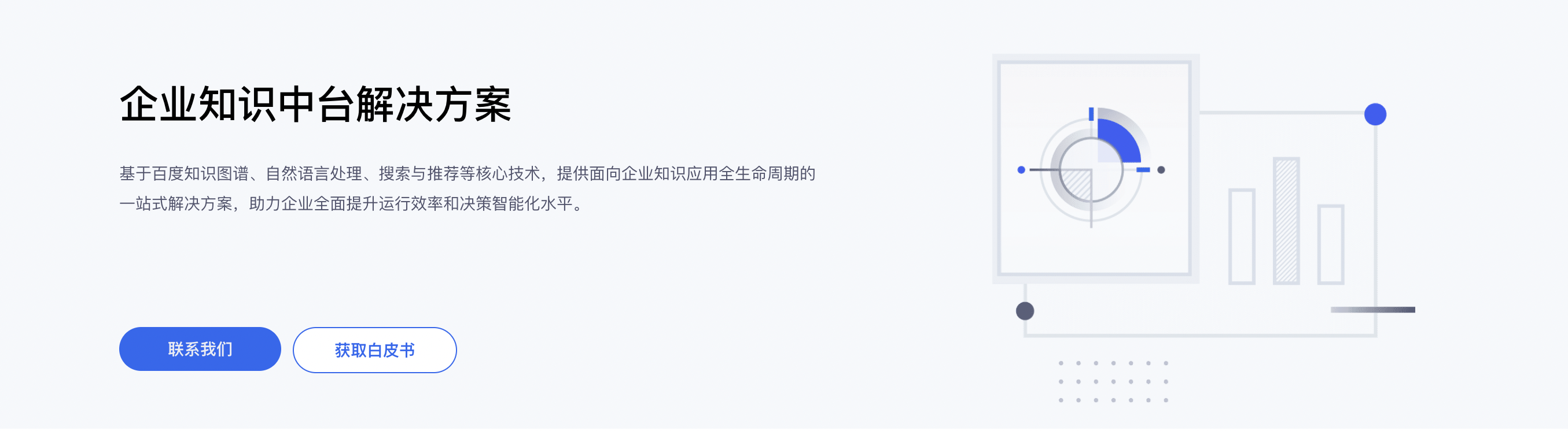 百度智能云企业知识中台解决方案基于百度知识图谱、自然语言处理、搜索与推荐等核心技术,提供面向企业知识应用全生命周期的一站式解决方案,助力企业全面提升运行效率和决策智能化水平。