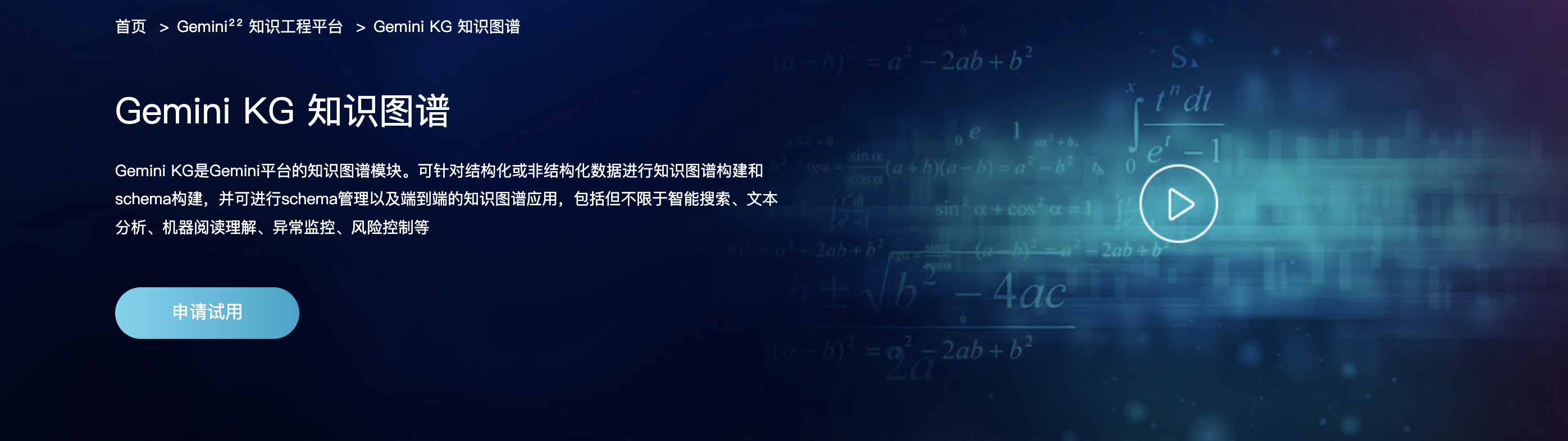 Gemini KG是Gemini平台的知识图谱模块。可针对结构化或非结构化数据进行知识图谱构建和schema构建,并可进行schema管理以及端到端的知识图谱应用,包括但不限于智能搜索、文本分析、机器阅读理解、异常监控、风险控制等。