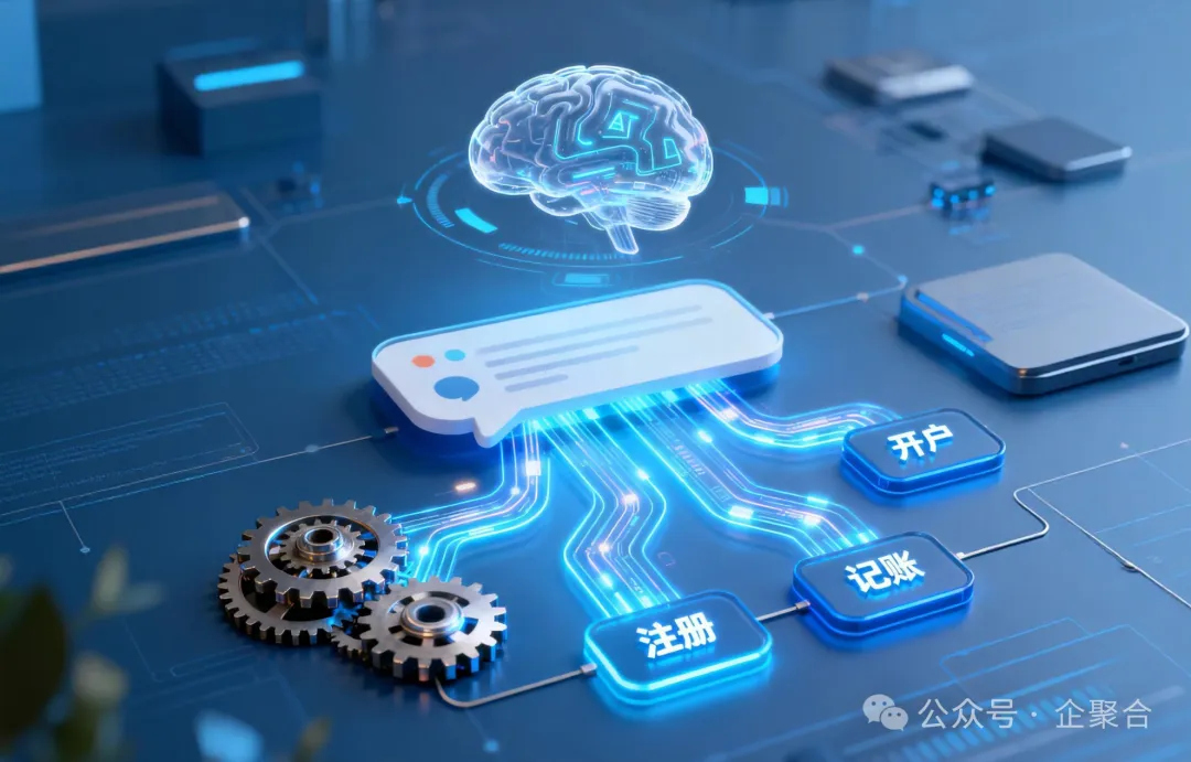 此时,企聚合的AI会自动识别图片中的关键信息(金额、税号、商品),并在后台默默生成记账凭证和待办任务。