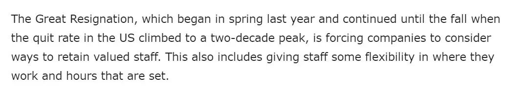 在外媒《Google cancels bi-annual performance reviews, shifts to GRAD system》的报道中,就有提及到2021年春天开始的美国“大辞职”现像,居高不下的辞职率,为各大公司敲响警钟。