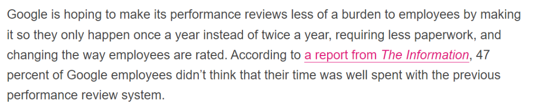 根据The Information的报告显示,47%的谷歌员工认为他们花费在Perf系统上的时间“不值得”。