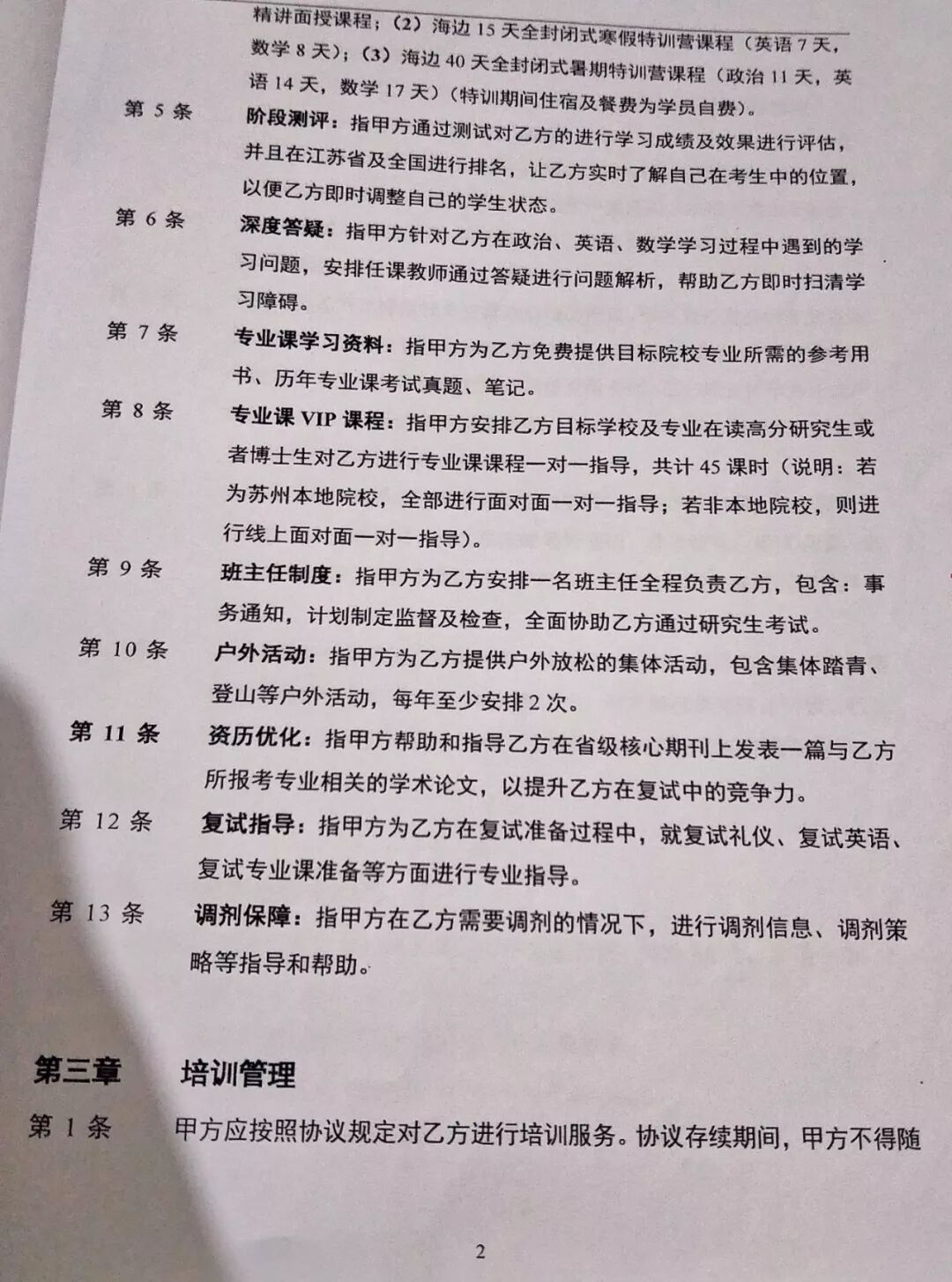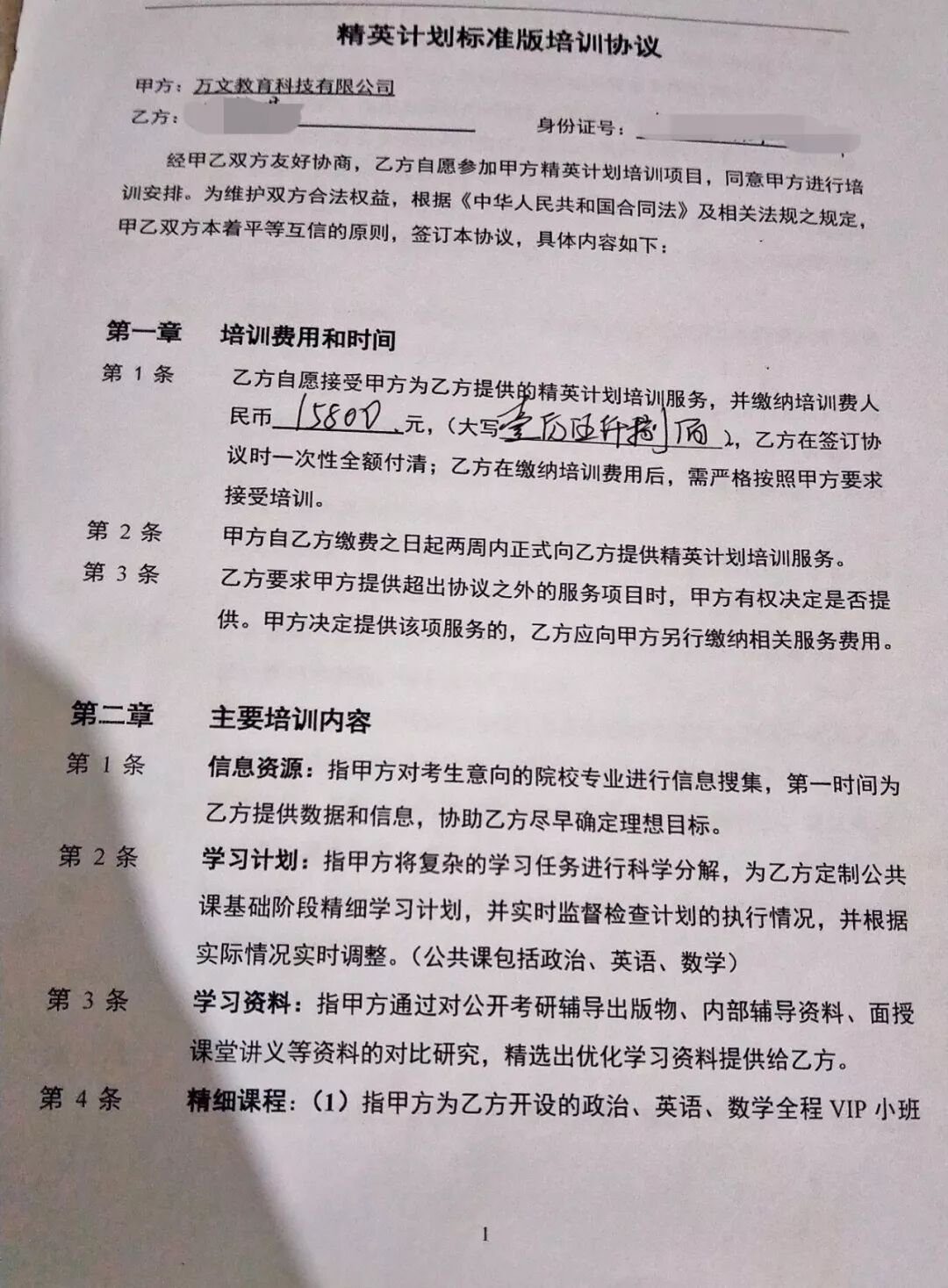 陆媛签署的考研培训合同